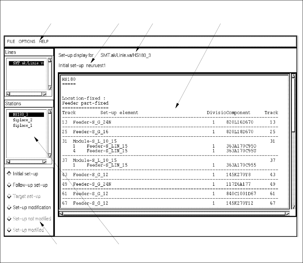 From the list a station is selected for which a given set-up type is to be displayed, or for which set-up changeover