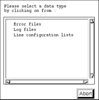 ● Click on desired data type, e.g. Error files (or Abort if the dialog box is to be closed without