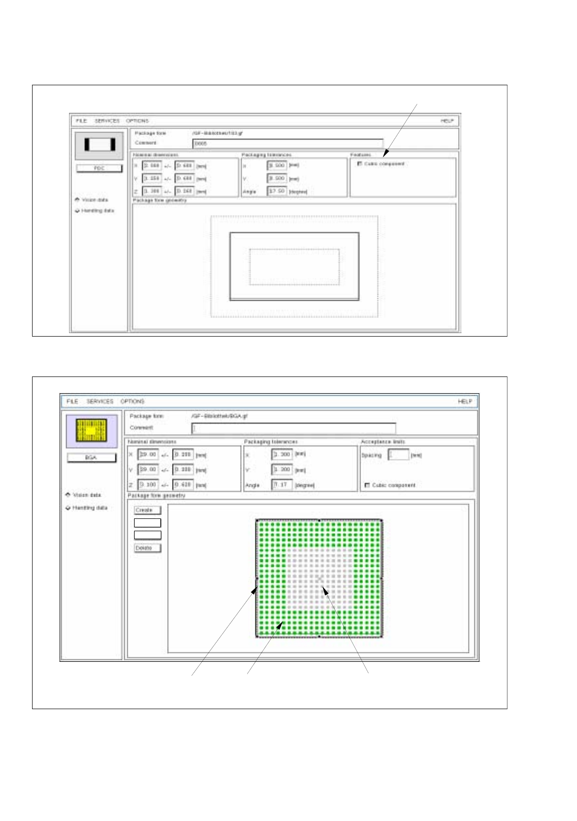 Fig. 6.1.1 Main Window "Package Form Editor (Displaying Vision Data - Irregular FDC)"