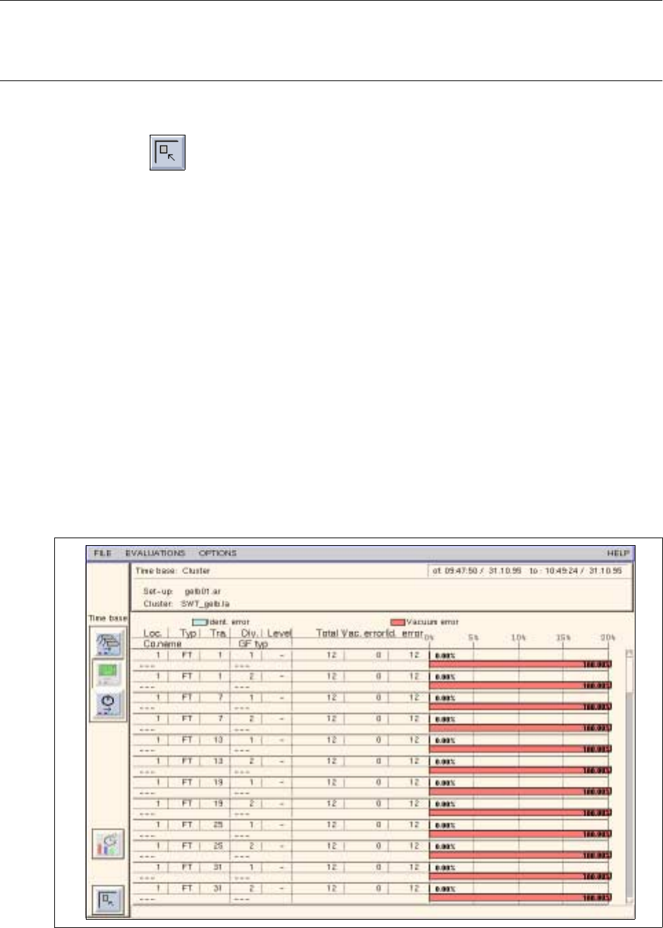 The "Track trend" type of evaluation allows the eight tracks with the highest identity and vacuum error rates to