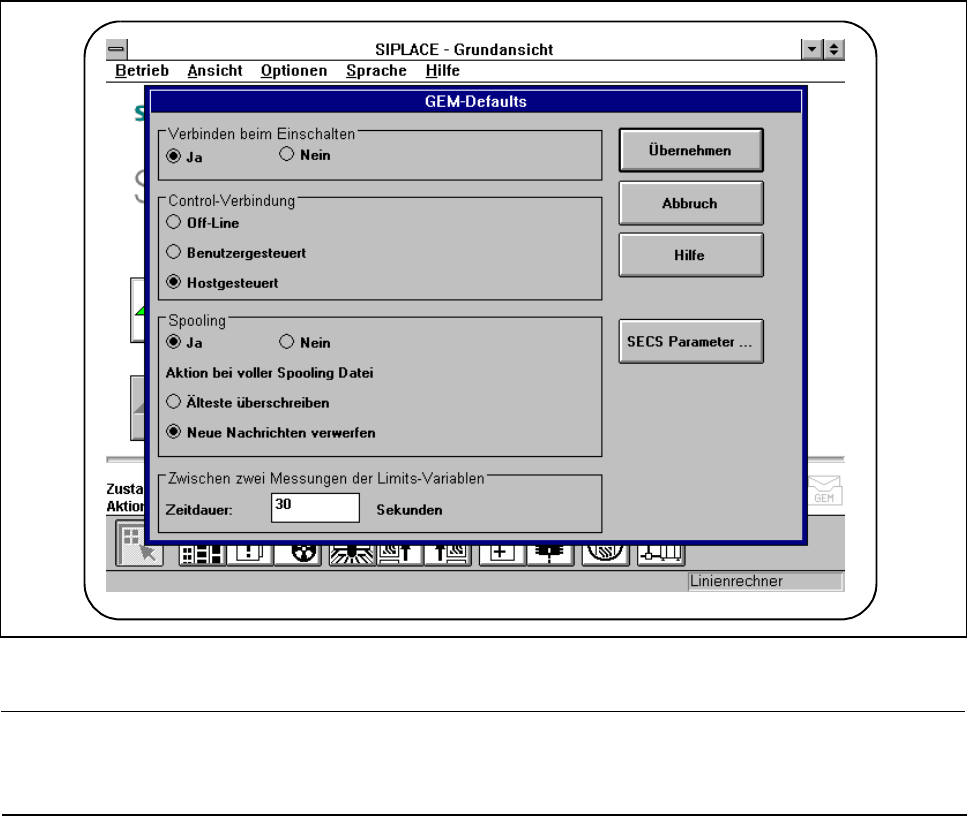 meg, amelyek bekapcsoláskor a SIPLACE állomás standard paramétereiként megadásra