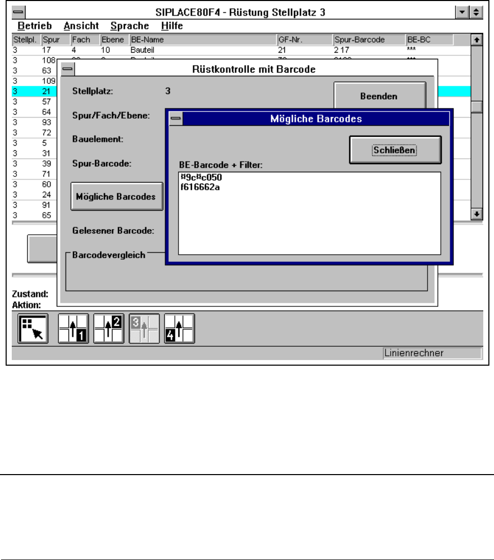 - A beolvasott bárkód összehasonlításra kerül az igényelt bárkóddal. A megadott filter az