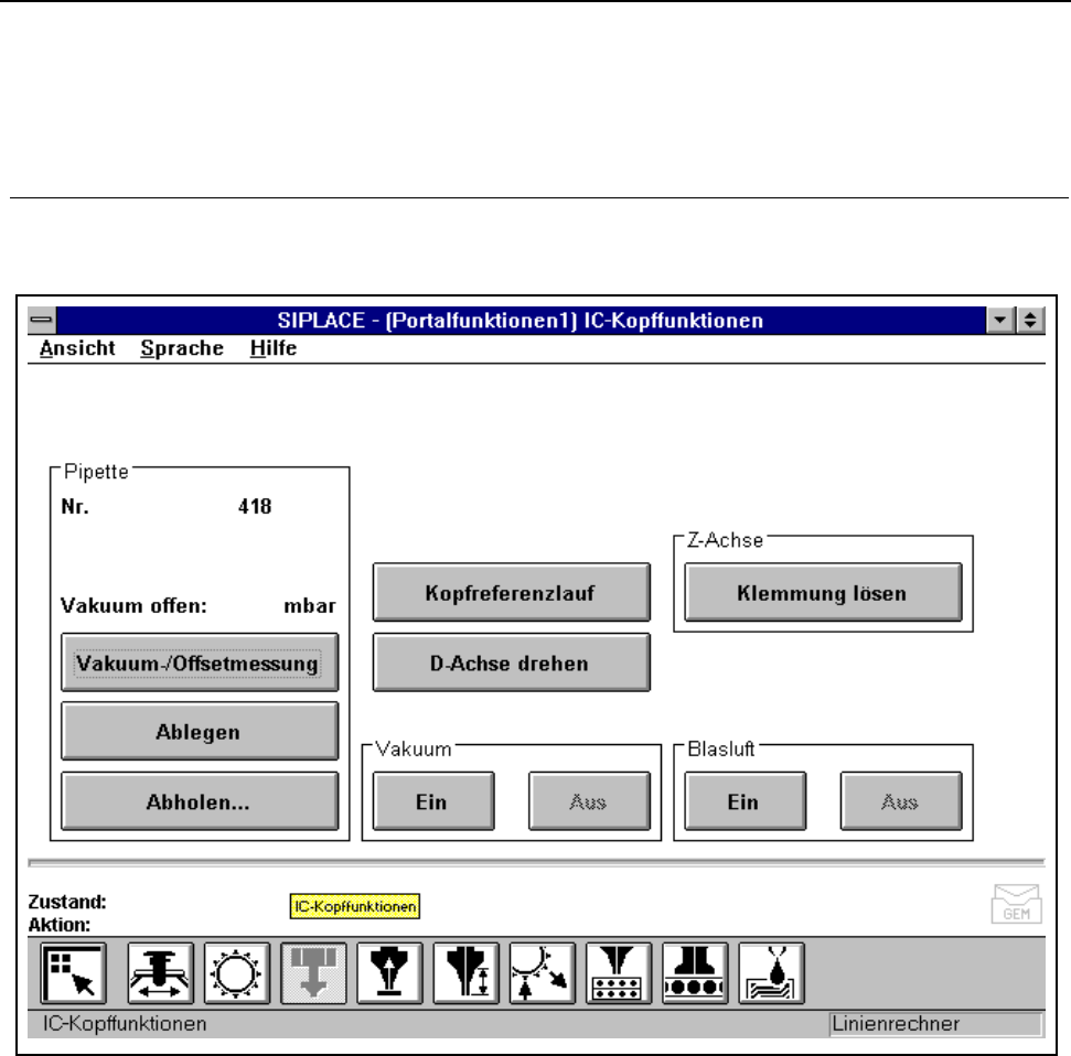 Ennek a funkciónak az aktivizálásakor az IC-fejben található pipettát lelehet rakni. Az aktuá-