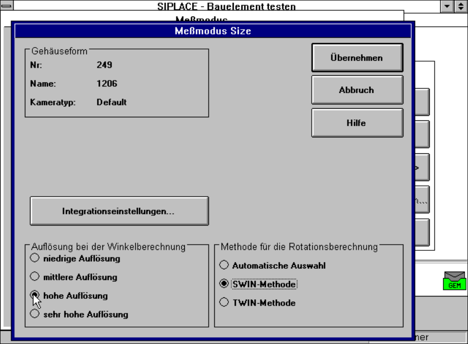 "Integrációs beállítás Size mérési modus" menü.