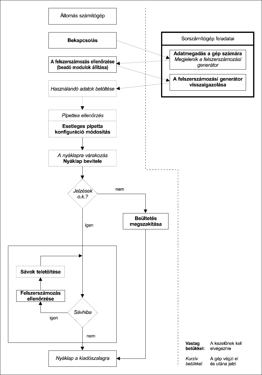 A következõ folyamat diagram bemutatja a sorszámítógép, automata akcióit, ill. a kezelõjét