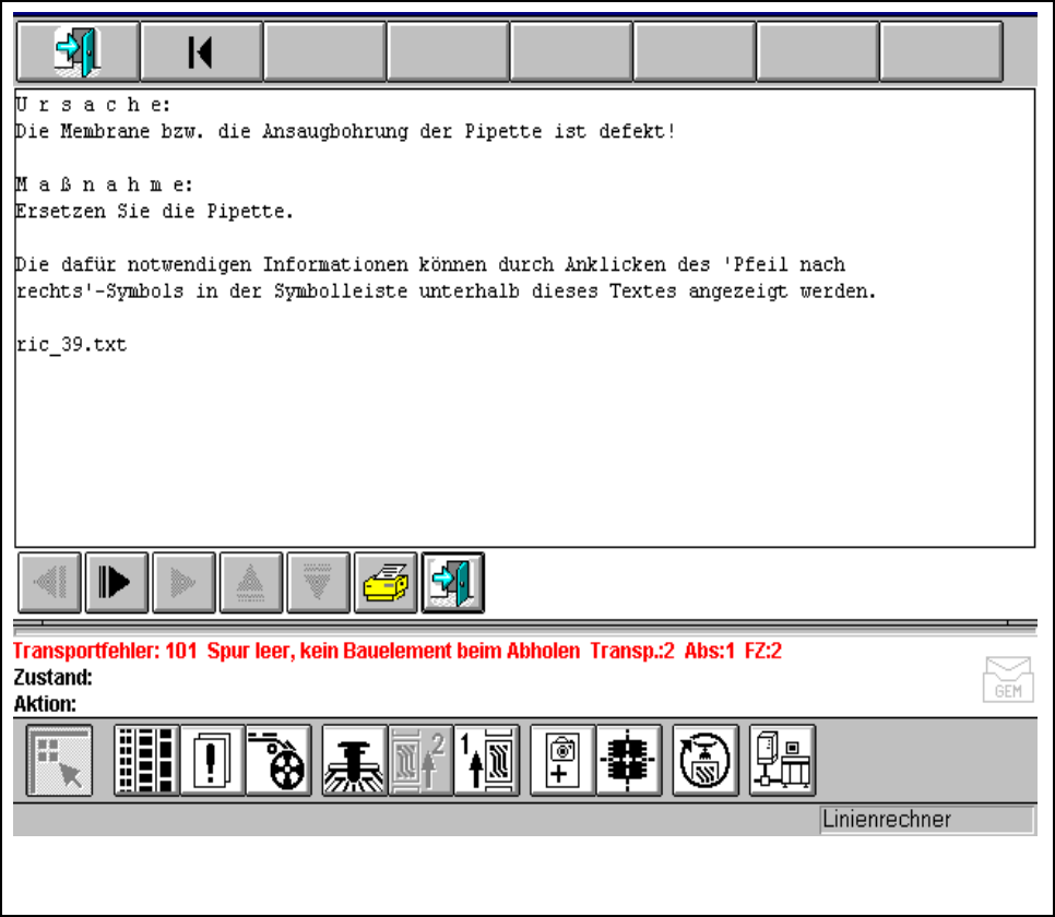 A kijelzõ ablakban a felmerült hiba szempontjából lehetséges ok kerül leírásra és intézkedési jav-