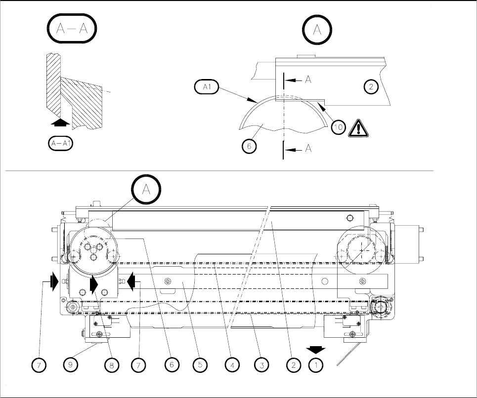 - Zsírozzuk be a fogszíjakat a vágótárcsa csúszka mozgatása céljából (9.3.4 ábra, 9 - 27.