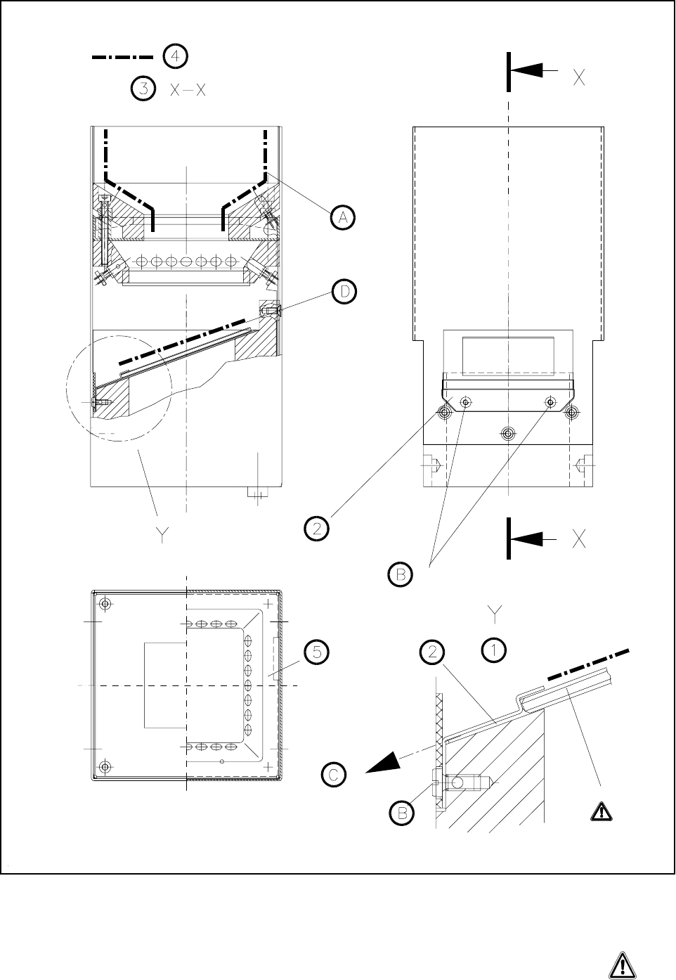 3 X-X metszet 4 A tisztítandó felületek üveglap