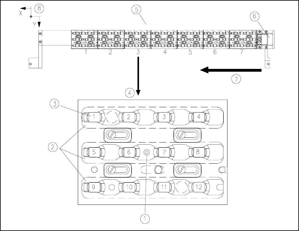 A pipettacserélõ egyes tárain egy-egy pozíció jelölés található a helyzetfelismerés céljából.