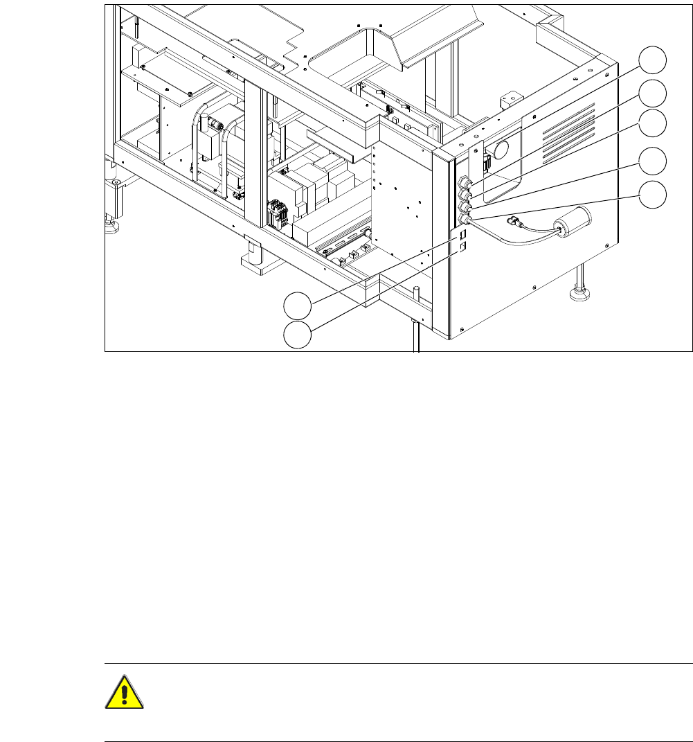 3x415VAC ± 5%, 50/60Hz mains voltage. This means that some parts of the system carry po-