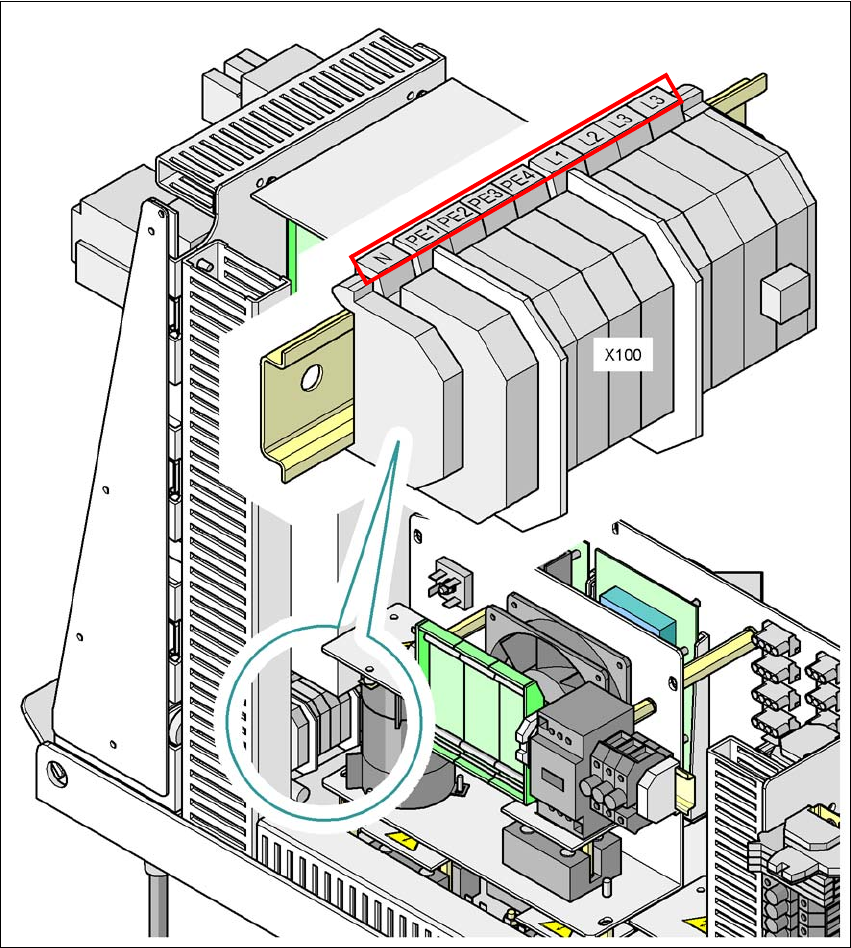 Fig. 4.4 - 4 Terminal panel for connecting the power cable