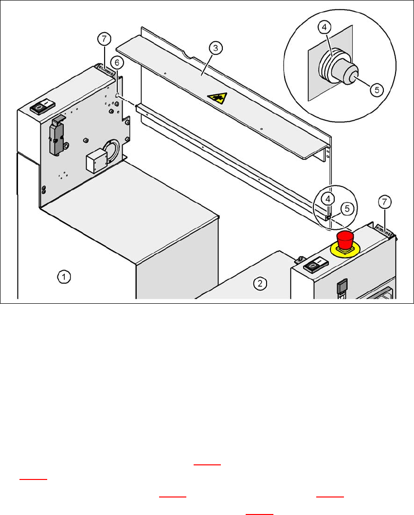 Fig. 4.5 - 9 Fitting the conveyor cover and the second half of the extension kit