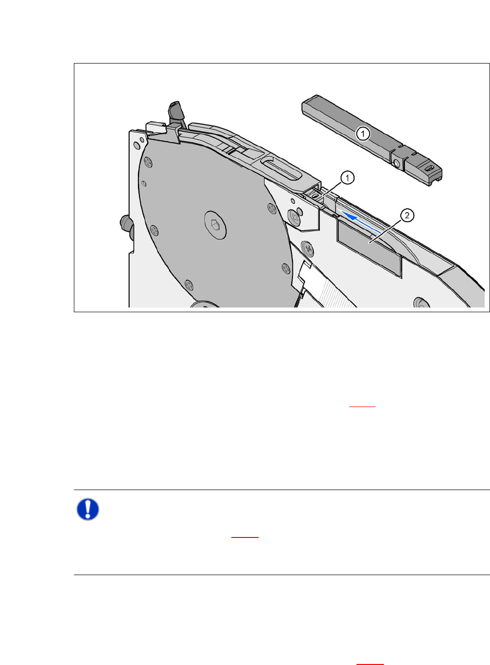 Insert the tape support (item 1 in fig. 6.1 - 3