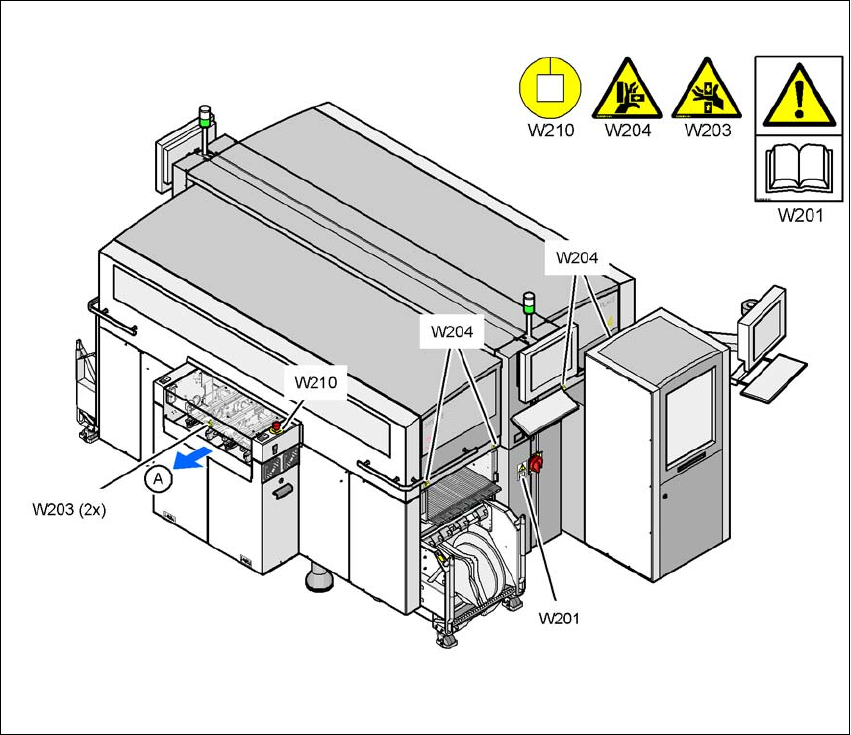 2.2.1 Warning Labels W201, W203, W204 and W210 on the Placement Machine