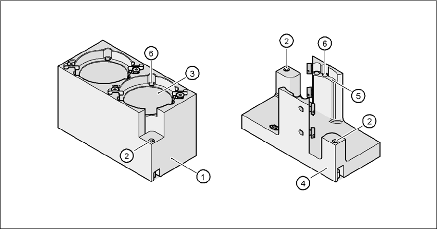 Align the nozzle changer so that the marking hole (item 1) is on the left, as viewed by the op-