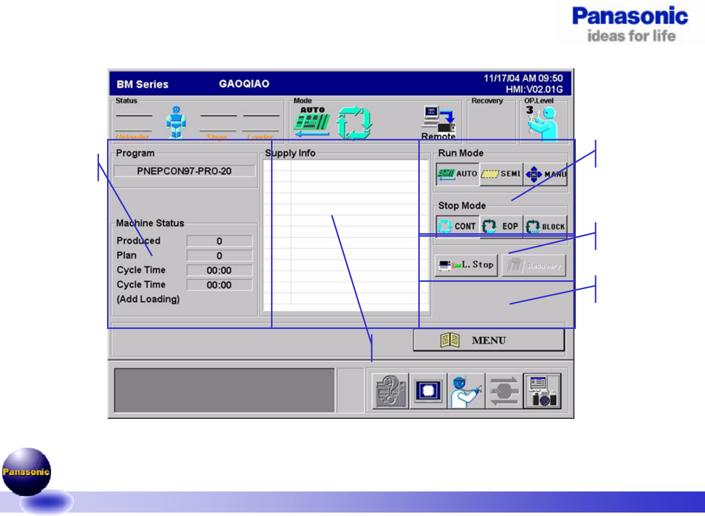 1.机器生产模式的切换: Auto/Semi , CONT/EOP/BLOCK