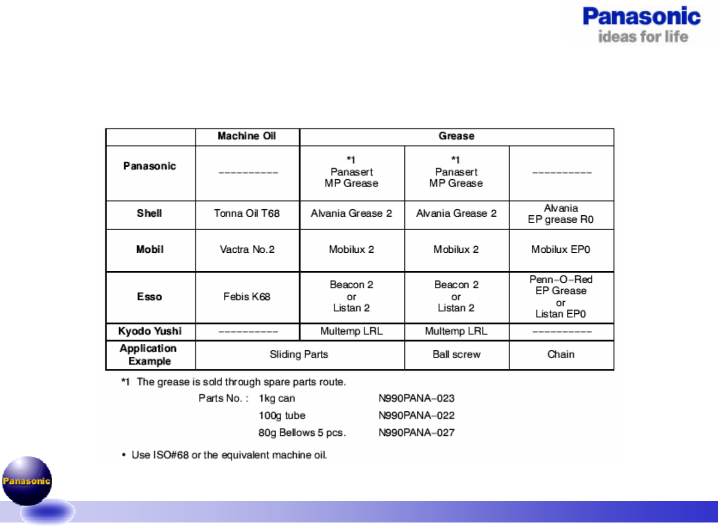 机器用标准油与推荐油表