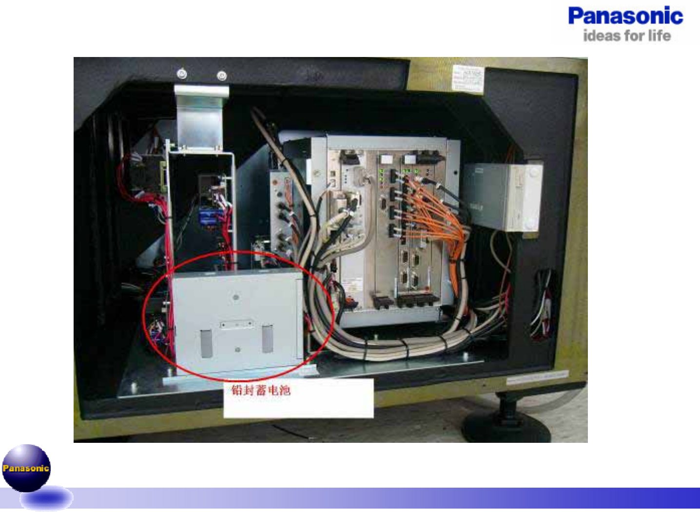 v1.4-061221 87/89 2 ,蓄电池安装位置图示: 机器左后方下侧(若有 TRAY 单元,则在该单元下侧有一组)。