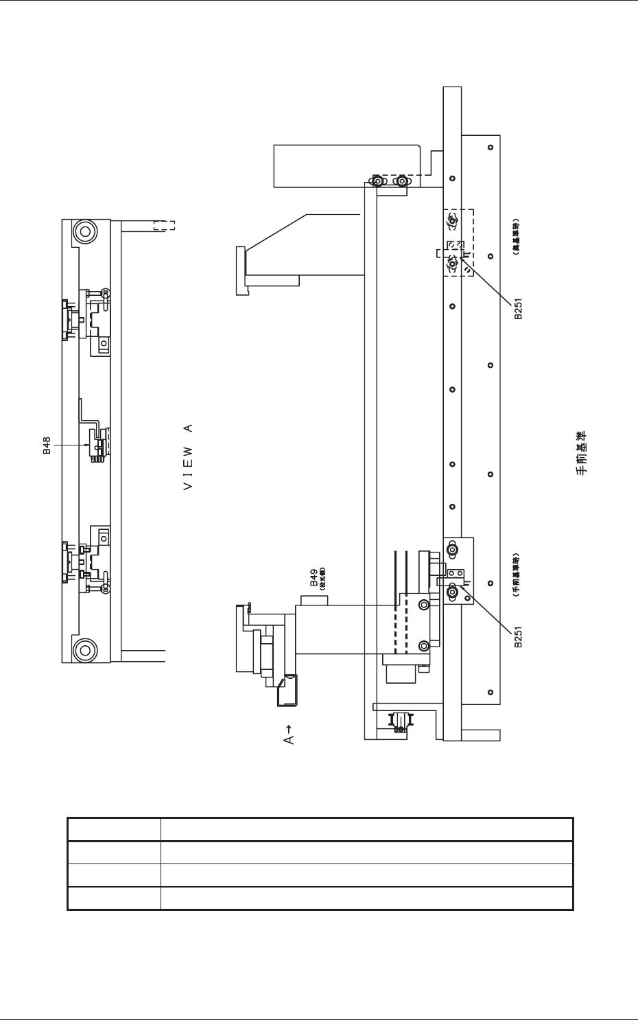 2 - 11 Tg 1301 -ID-MD 基板チャック部レイアウト 1 0602 - 001 -(M 831 YE--- 1001 ) 基板チャック部レイアウト 1 Table 5C3 記 号 名 称 B48 基板横クランプ前進限 B49 幅異常検出(投光側)