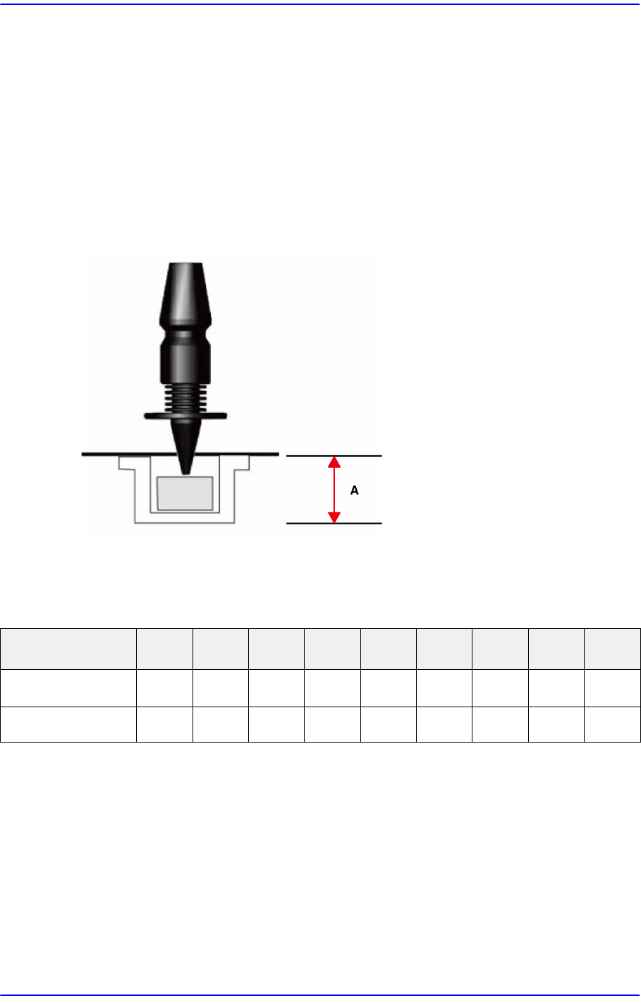 凹槽(Emboss)深度‘A’(图 1-7)不同,则使用可能的间距也不同。详细事项与本公司
