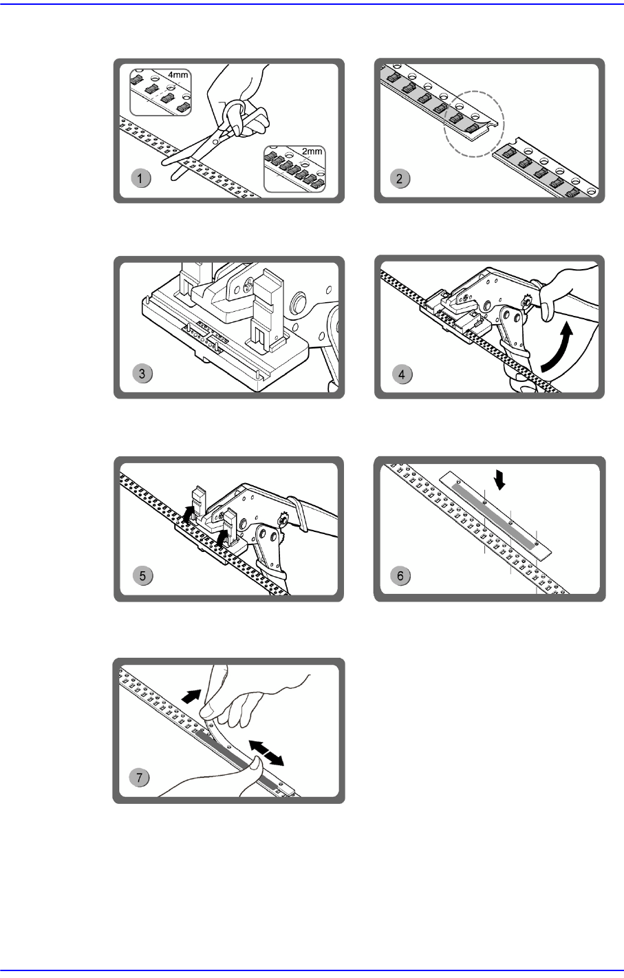 2-28 三星 SM-Series 气动带式喂料器的操作手册 2.6.2. 料带连接方法 (Paper Type) 请用剪切使用中带的末端和连 接的带 的开头部分。 揭开连接的带塑料的初段要长一 些。 把使 Burr 朝上, 把把切断 的 Ti p 夹在 To o l 。 操作 T ool 把手连接带。 举起向下装置, 按住 T ool 把手拉开后 从 T ool 揭开带。 对准连接 T ape 的孔, 在切断部位上 放置乙烯连接料带。…