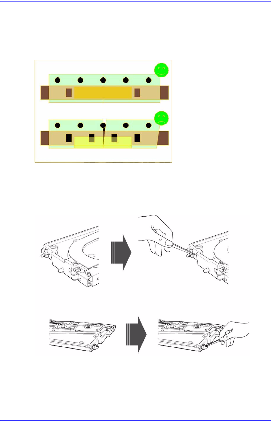 3-13 维修与维护 确认喂料器底座基准面是否粘有 部件或污质。 如果粘有部件或污质, 请除去 粘有部 件或污质。 图 3.4 确认喂料器底座基准面污质 (8mm~88mm) 3.3.4. 测定误差发生时 磁带堵塞时 确认 Sprockets 齿轮上是否缠着传送 带。 → 清除堵塞部分, 参照 “2.1.4 锁夹固定 ” 重新操作磁带安 装。