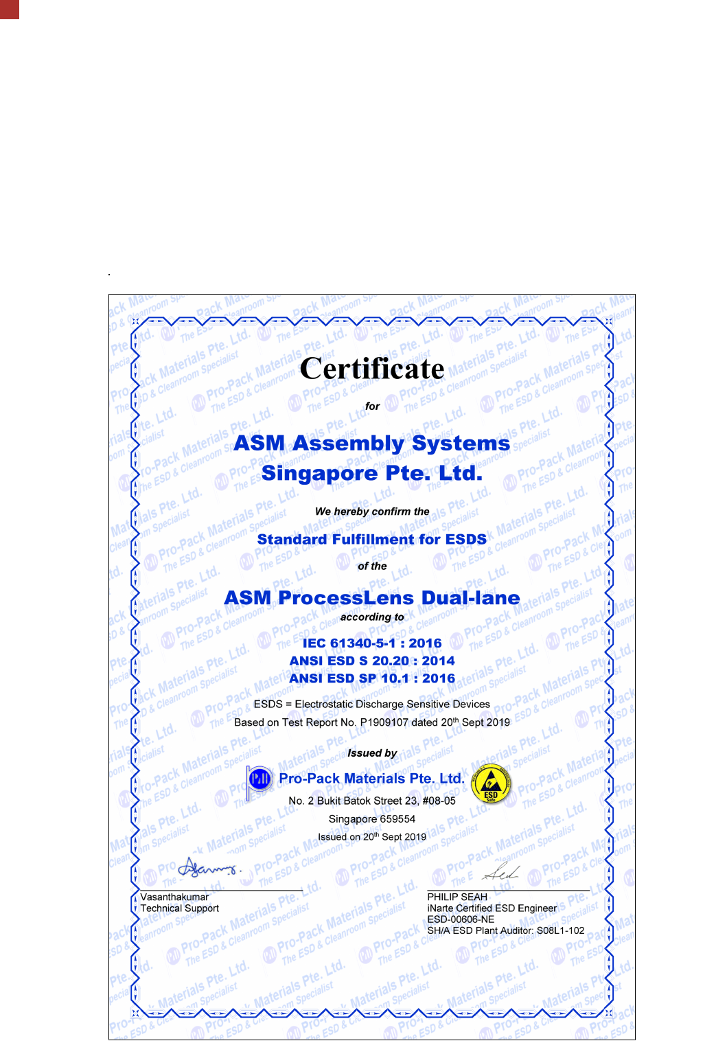 ESD Certificate ASM ProcessLens Single-lane 15 ESD Certificate ASM ProcessLens Single-lane