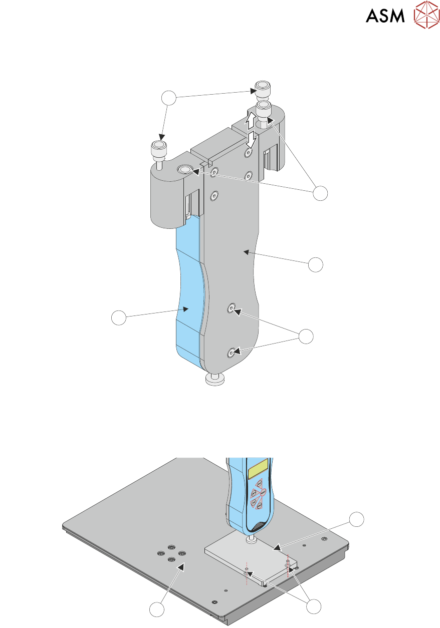 13. Ensure that the force gauge (4) is secured to the test jig mounting plate (2) using two securing