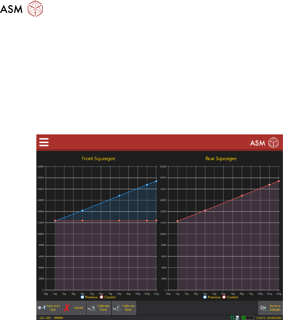squeegee load cell pressure calibration chart, allowing a visual comparison with previously