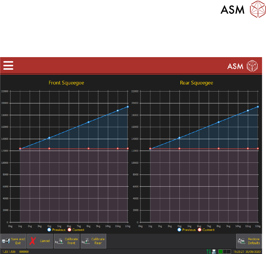 Once the rear squeegee load cell calibration is complete, both the Front and Rear Squeegee