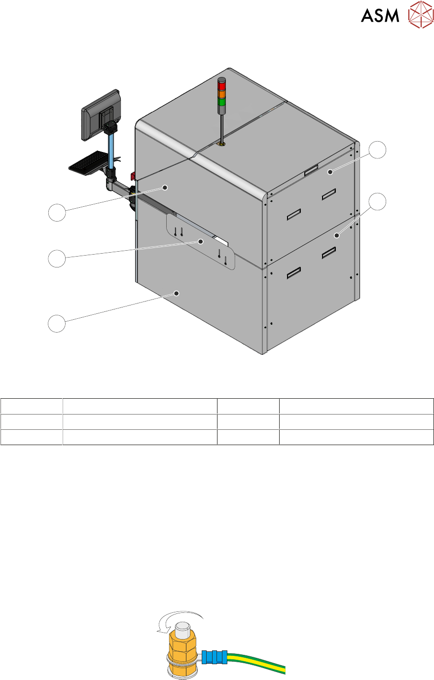 The machine panels are electrically bonded using an earth stud on the panel connected to a green