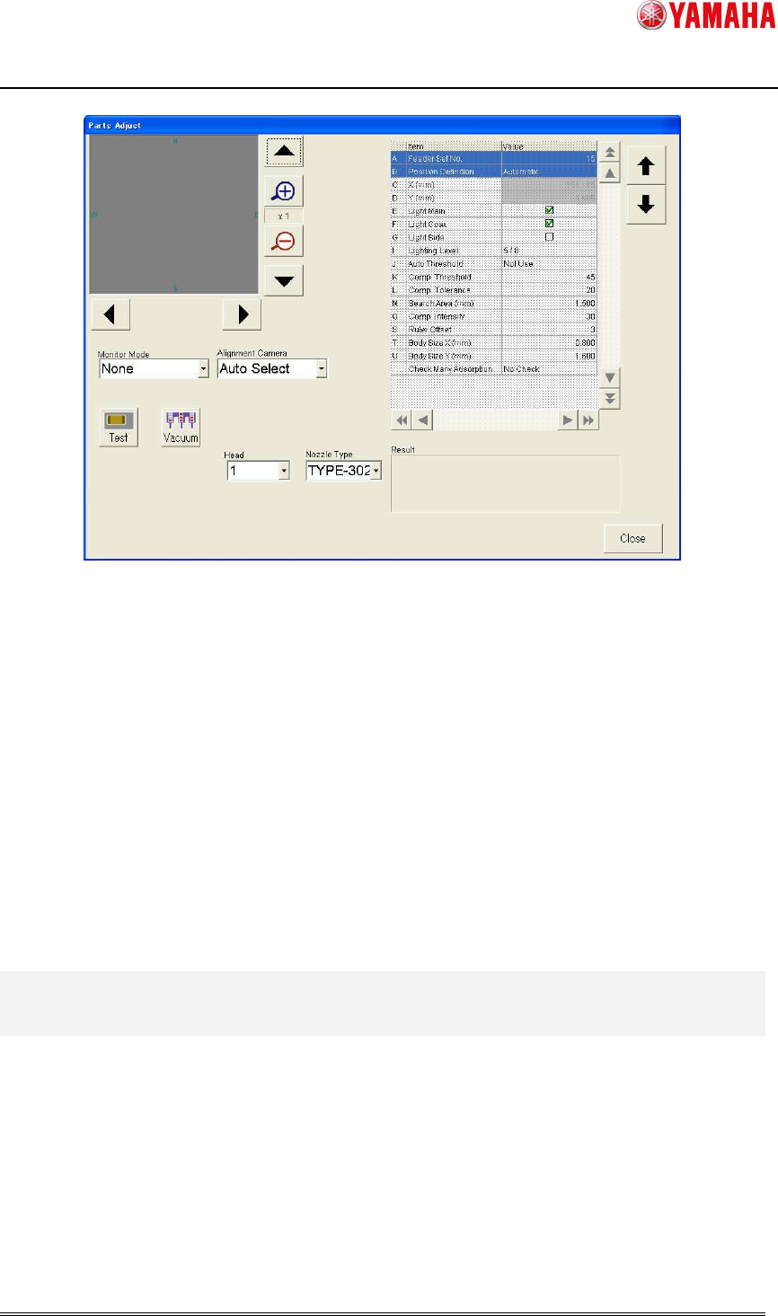 (※) When “Test” is executed on the [Parts] - [Parts Adj] screen, [Comp. Intensity] in parts data is