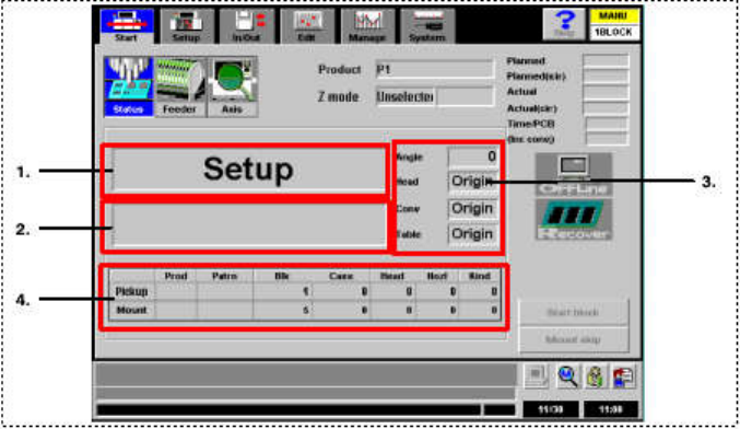 1. Machine status : 目前机台正在处理之动作 , 例如:PCB waiting,trouble