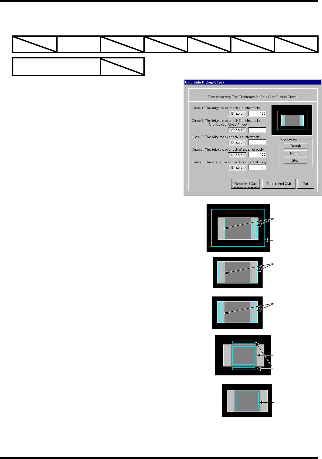 BM122/123/221/231 元件识别数据制作方法 4.5 识别可选项:高频度 4 E35CCC-32- 241-A1 4.5-7 4.5.7 横向竖立检查 适用型号 穿过箱型 100 箱型 101 内部电极型 102 外部电极型 103 导线型 104 BGA 型 105 复合型 106 元件检查 可选项 可复数指定 功能 进行两端 2 接头元件的横向 竖立检查。 说明 在进行本检查时 ,电极宽度或者元件 中央部…