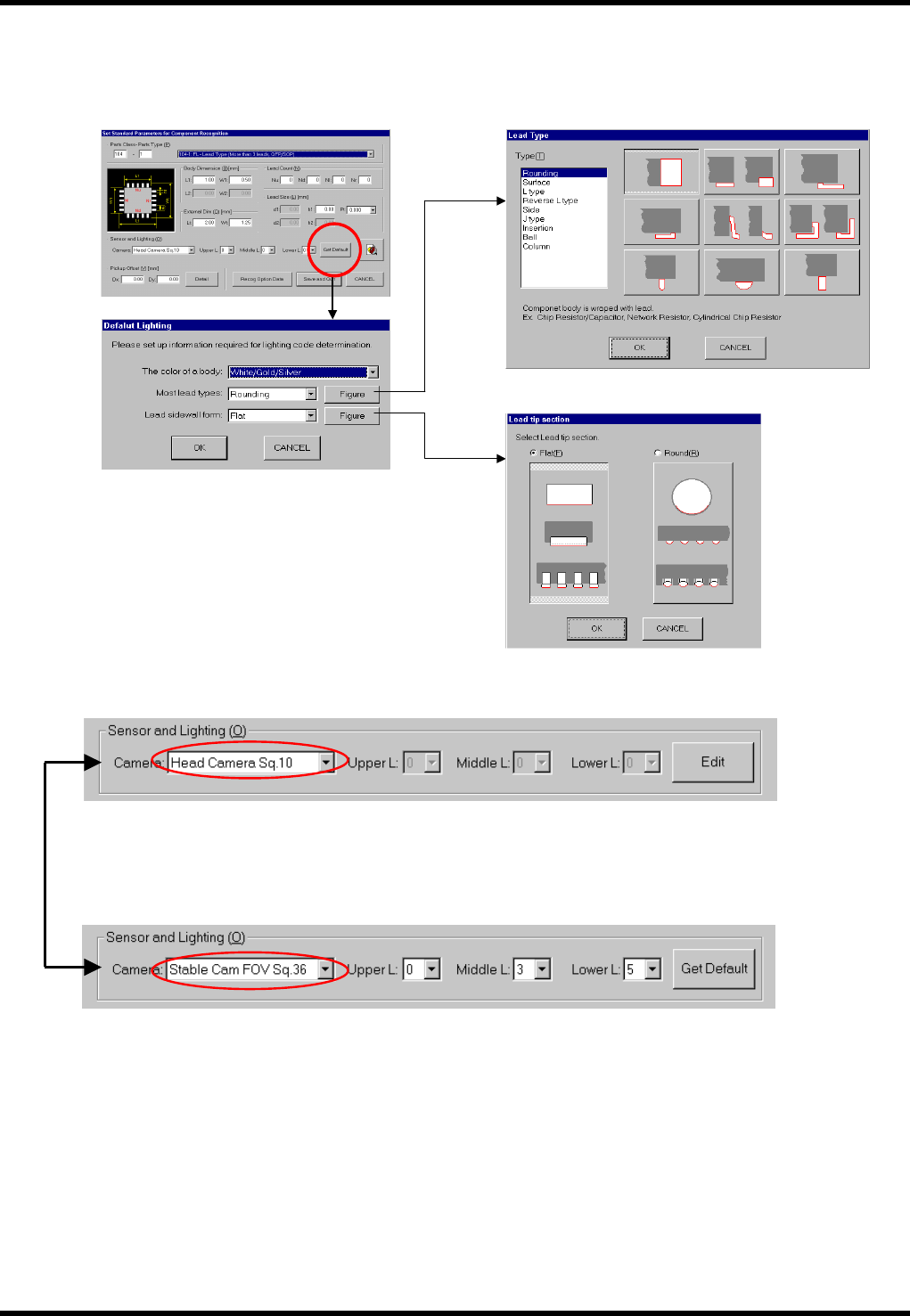 BM122/123/221/231 元件识别数据制作方法 2.2 识别数据制作工具 的说明 E35CCC-32- 111-B0 2.2-2 当照明编码指定 为 0, 0, 0 时,元件尺 寸定义图上的记载 的标准数值亮灯。 另外,利用推荐值按钮 可以根据机体的颜色 、多电极型、电极接 地线形状进行设定 以得到最佳照明条件。 尽管如此仍无法识别时 ,请根据各段的特性 进行调整。 关于光学条件 当头摄像机被选 择时, 为了 使头摄像…