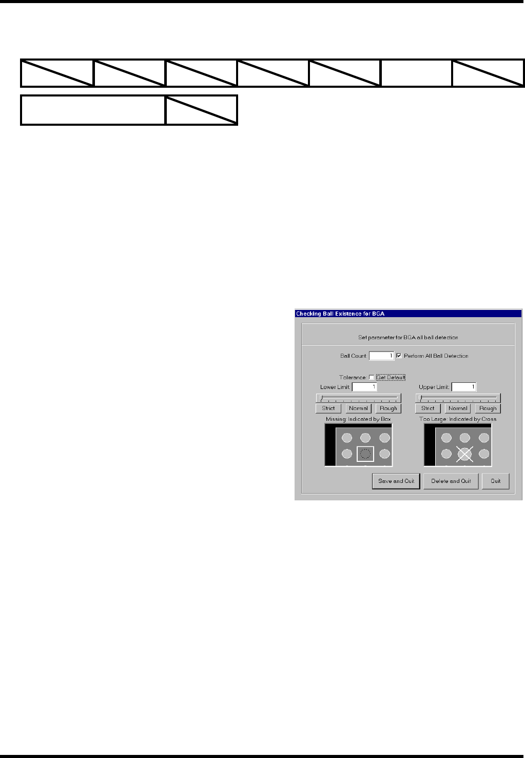BM122/123/221/231 元件识别数据制作方法 4.5 识别可选项:高频度 4 E35CCC-32- 241-A1 4.5-4 4.5.4 元件尺寸容许 值 适用型号 穿过箱型 100 箱型 101 内部电极型 102 外部电极型 103 导线型 104 BGA 型 105 复合型 106 元件检查 可选项 可复数指定 功能 改变尺寸检查的标准。 (在没有指定此可选项 时,用推荐值检查尺 寸。) 说明 请在想要…