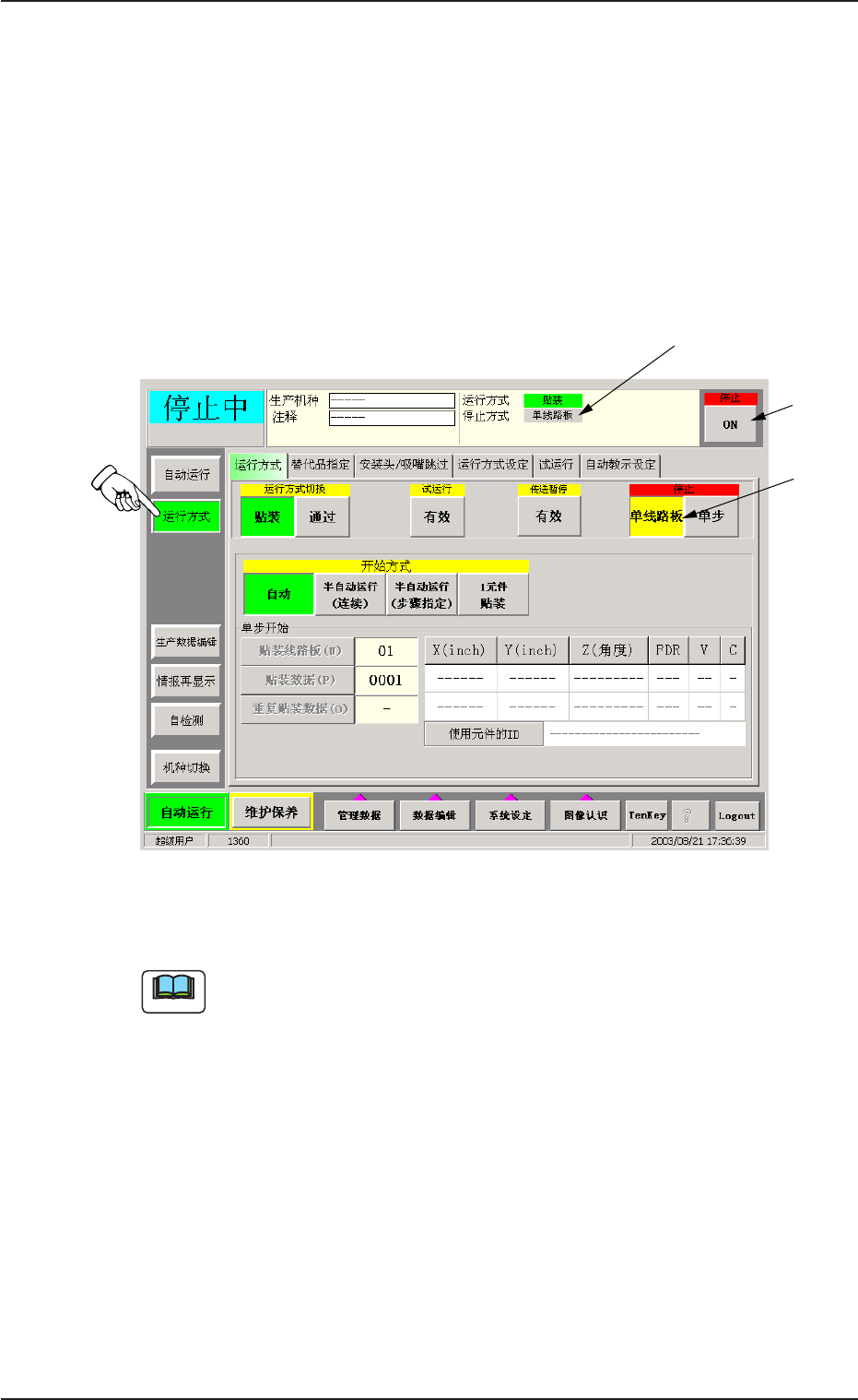 (2) 按下运行方式子菜单的[ 运行方式]Tab 后,按
