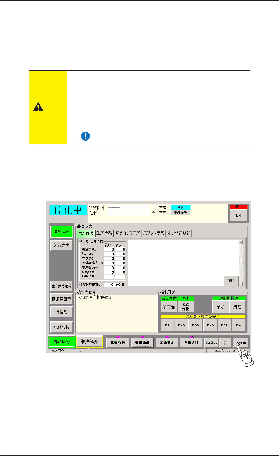 *3 停止[ON]按钮,在装置内的线路板上贴装元件后,各单