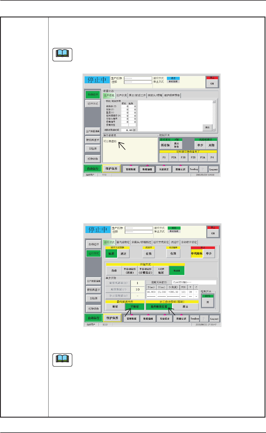 (8) 自动运行界面的操作人员信息栏里显示 “ 可以热启动 ” 的信息时,表