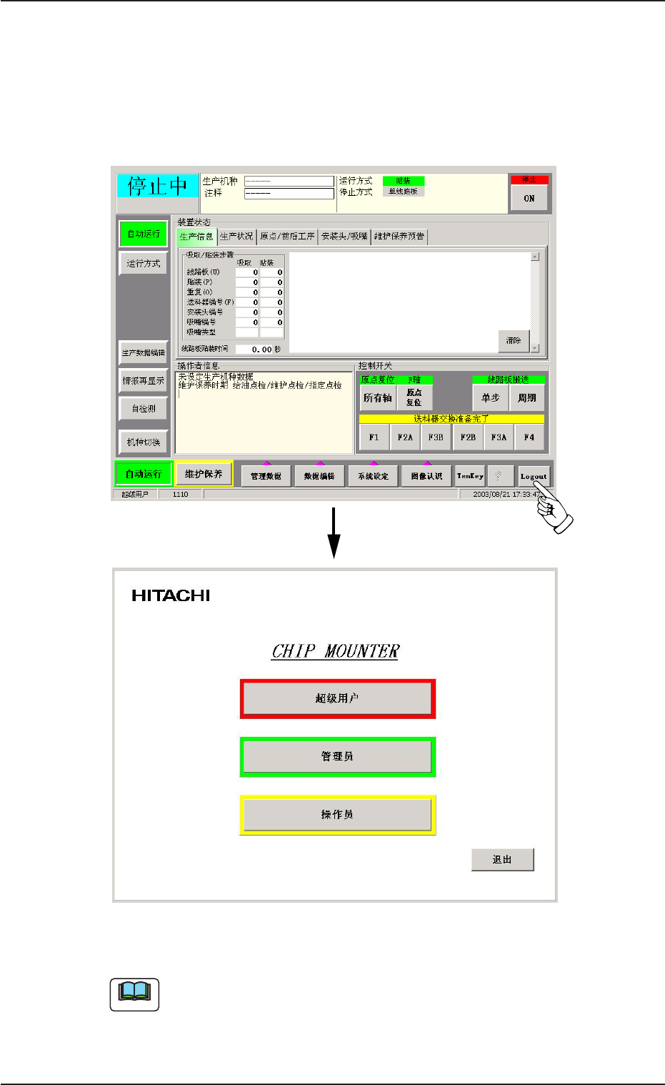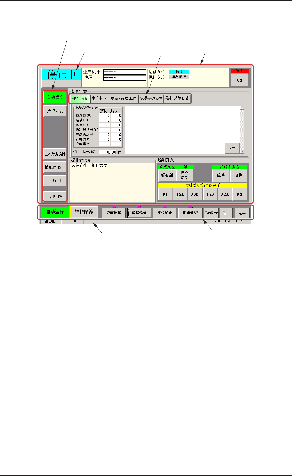 有关生产运行菜单界面的构成,请参照 “ 第二篇: 操作( 培训人