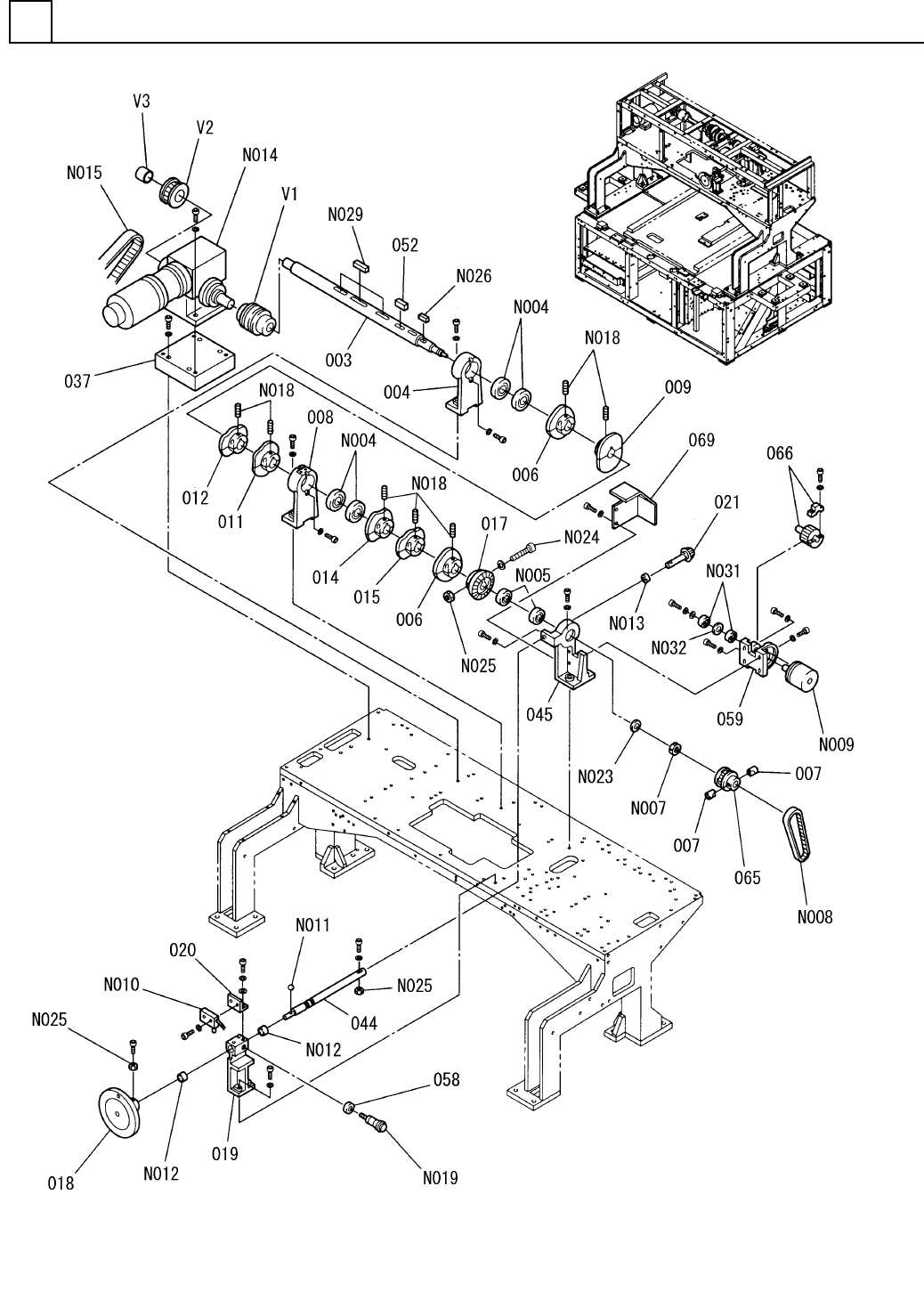 PART NAME REMARKS Q'TY 1 本体部(3) MAIN BODY S ECT.(3) イラスト No. REF No. PART No. 部 品 品 番 個数 備 考 R 1 R 2 1 002 1010422054 COTTER コッタ 1 022 104130103101 PULLEY プーリー 1 023 102460801001 COLLAR カラー 1 026 104130103902 PIN ヒ…
