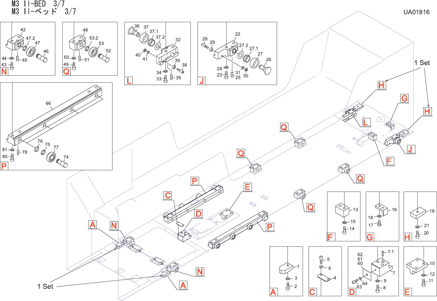 M3 II-BED 3/7 M3 II-ベッド 3/7 UA01816 No. Drg.No. & Code No. QTY Description Rating Materials Remarks 番号 図番 & コード番号 個 数 品名 規格 材質 備考 1 PM00753 1 BLOCK ブロック FE SET, Note.1 2 H5298A 2 BOLT, HEX SOCKET ボルト 六角穴 M05X010…