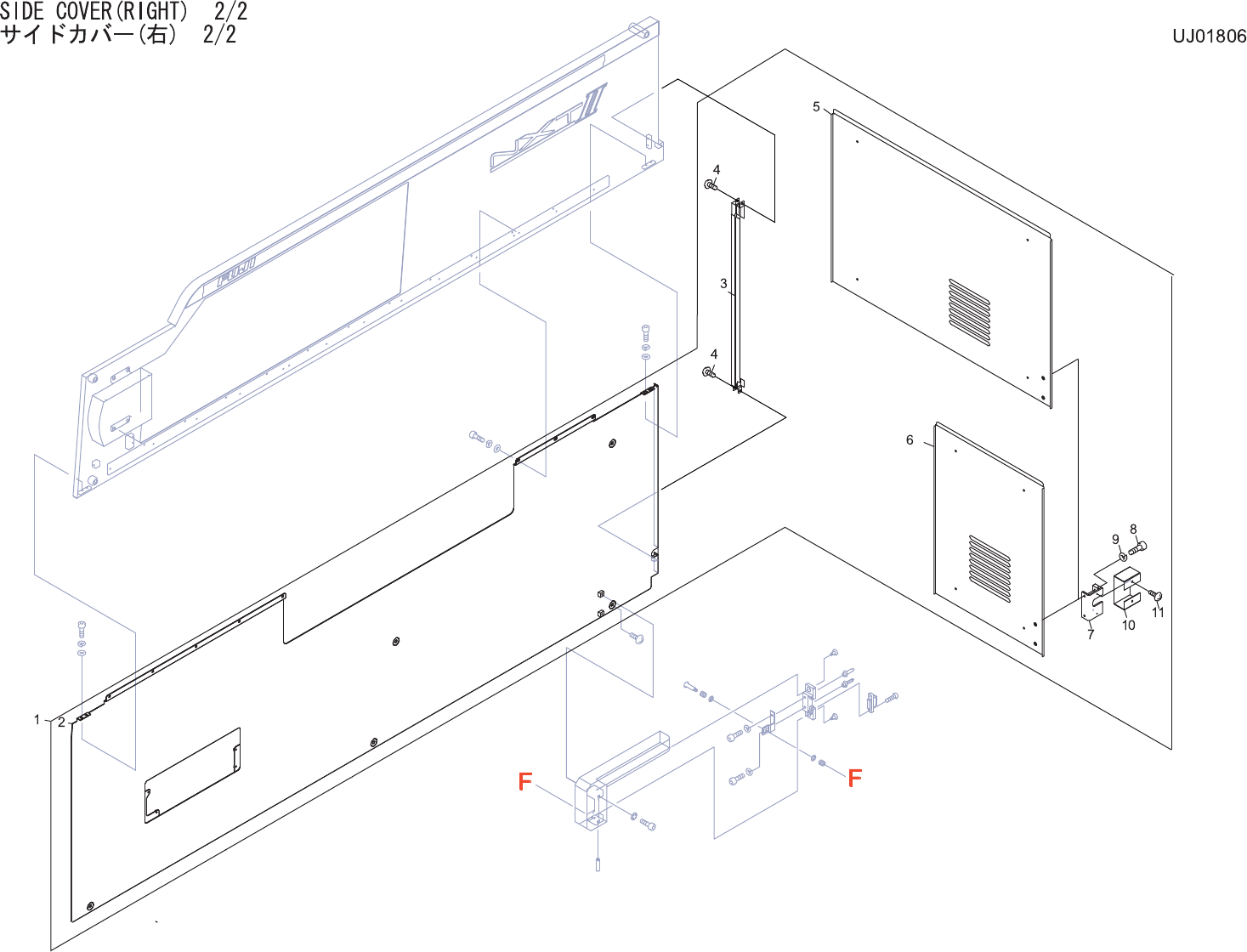 SIDE COVER(RIGHT) 2/2 サイドカバー(右) 2/2 UJ01806 No. Drg.No. & Code No. QTY Description Rating Materials Remarks 番号 図番 & コード番号 個 数 品名 規格 材質 備考 1 AB21000 1 COVER, SIDE カバー サイド OT 2 PB03GT2 1 COVER, SIDE カバー サイド FE 3 P…