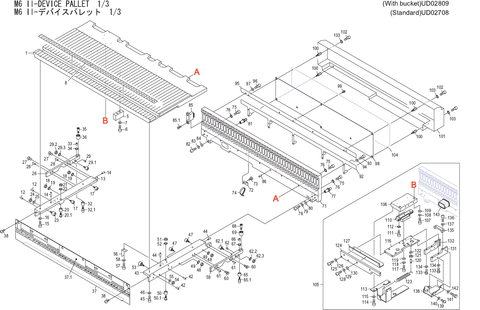 M6 II-DEVICE PALLET 1/3 (With bucket)UD02809 M6 II-デバイスパレット 1/3 (Standard)UD02708 No. Drg.No. & Code No. QTY Description Rating Materials Remarks 番号 図番 & コード番号 個 数 品名 規格 材質 備考 1 PM0F8S0 1 PALLET パレット FE 5 PM1190…