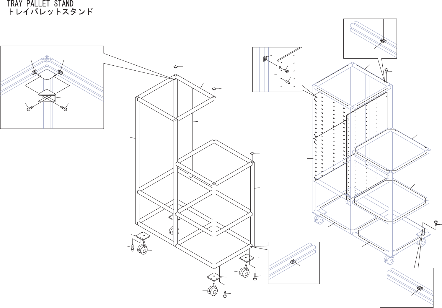 TRAY PALLET STAND トレイパレットスタンド AA25N02 No. Drg.No. & Code No. QTY Description Rating Materials Remarks 番号 図番 & コード番号 個 数 品名 規格 材質 備考 1 H3259R 22 FRAME フレーム ND853 L=385 OT 2 H3259W 4 FRAME フレーム ND853 L=1160 OT 3 H…