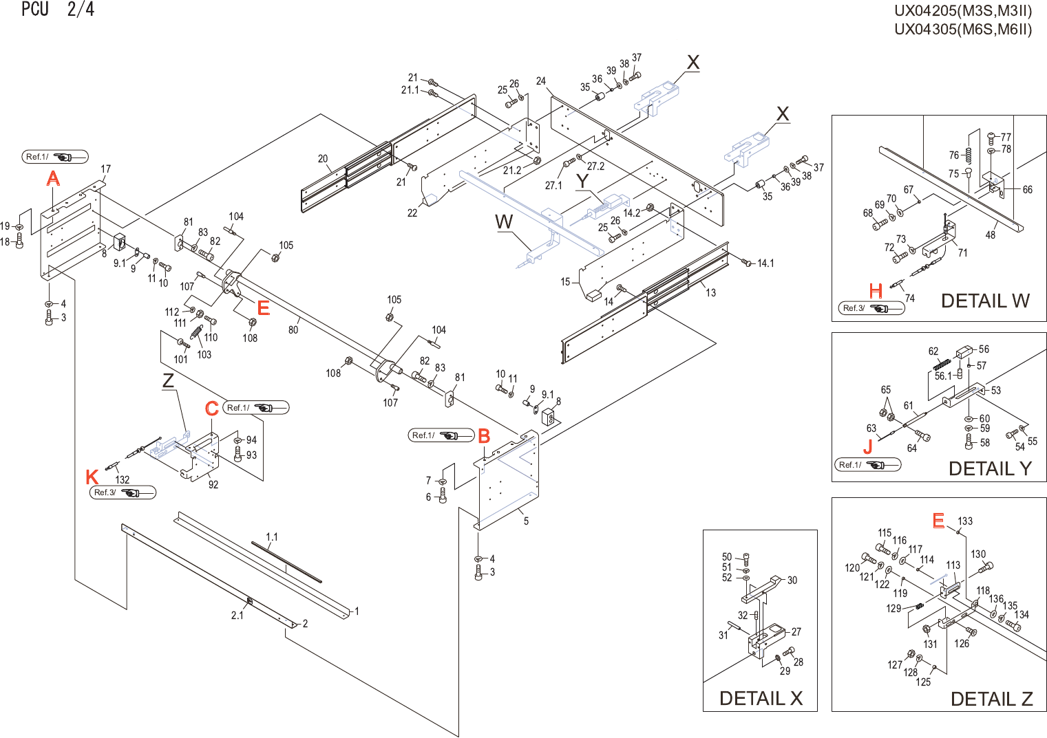 PCU 2/4 UX04205(M3S,M3II) UX04305(M6S,M6II) No. Drg.No. & Code No. QTY Description Rating Materials Remarks 番号 図番 & コード番号 個 数 品名 規格 材質 備考 1 PB77780 1 BKT BKT FE 1.1 H3068A 1 BUSHING ブ シュ KG-032 L=250M/M OT 2 PB7…