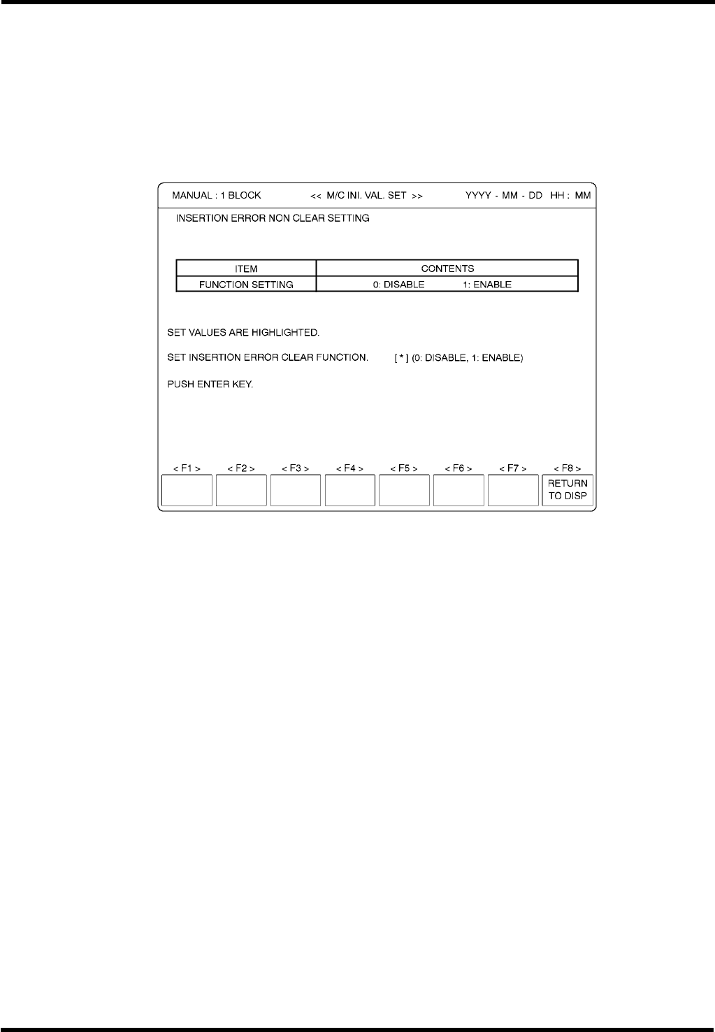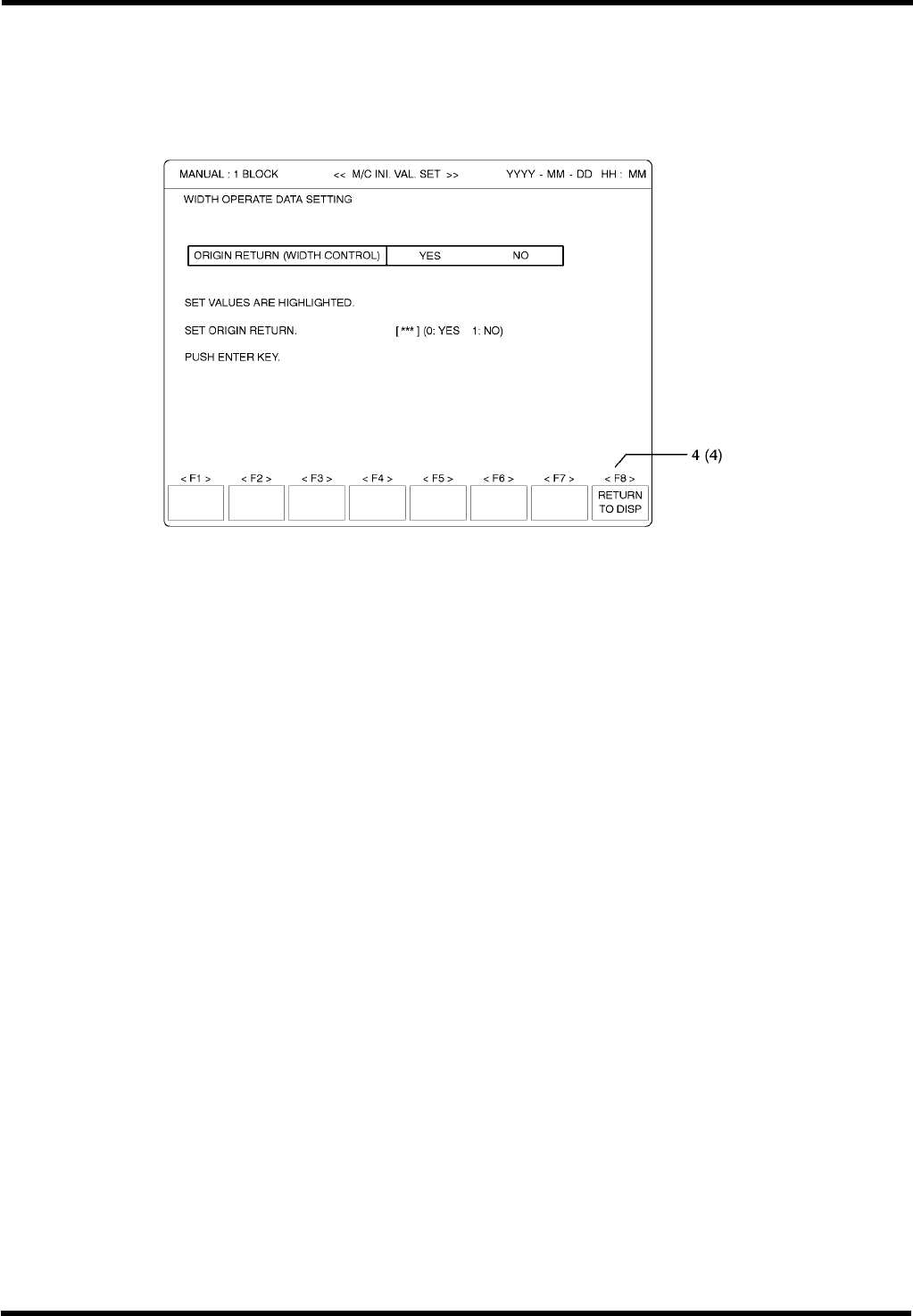 (3) 当完成设定后,按“F8”(RETURN TO DISP)。