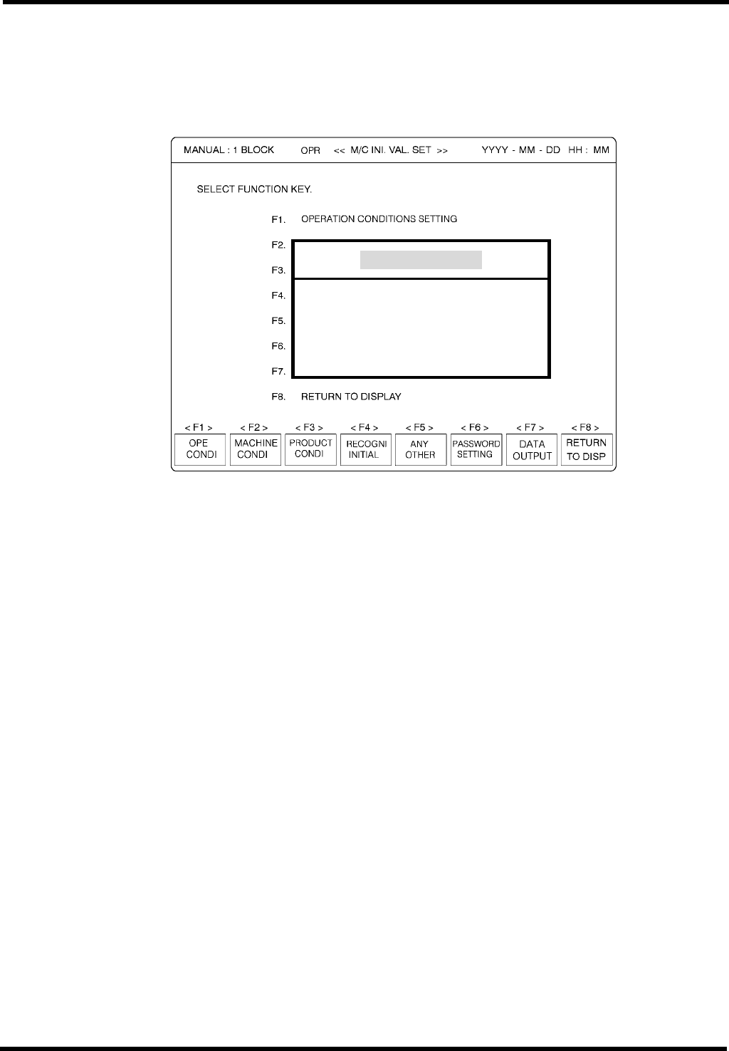 AVK3 参考手册 6.6 初始状态设定 ( 其它 ) 6.6.4 各操作等级的存取范围 操作工等级不准使用的功能 机器状态显示 服务菜单 F2 XY 轴示教 F1 机器初始值 F6 密码设定 F1 运转状态设定 F2 机器状态设定 F3 生产条件设定 F4 识别初始状态设定 F8 下一页菜单 F2 数据输入 / 输出 F3 数据编辑 工程师等级不准使用的功能服务菜单 服务菜单 F2 机器状态设定 F2 补偿数据设定 F3 旋转…