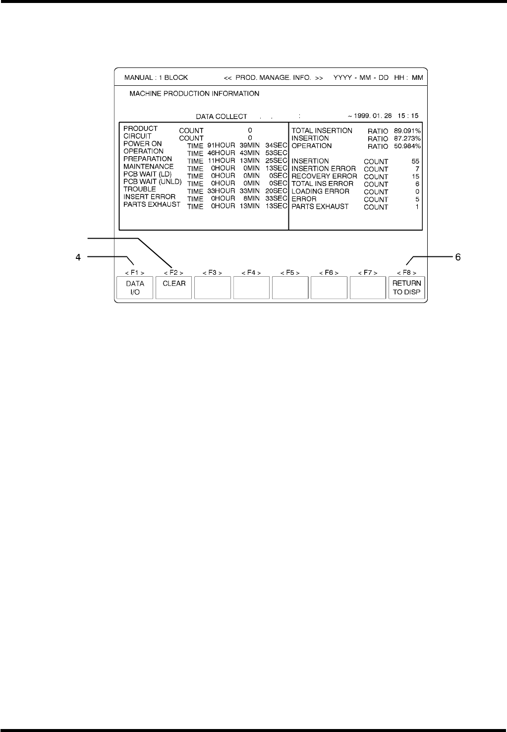 按“F1”(M/C PROD DADA[机器生产数据])。