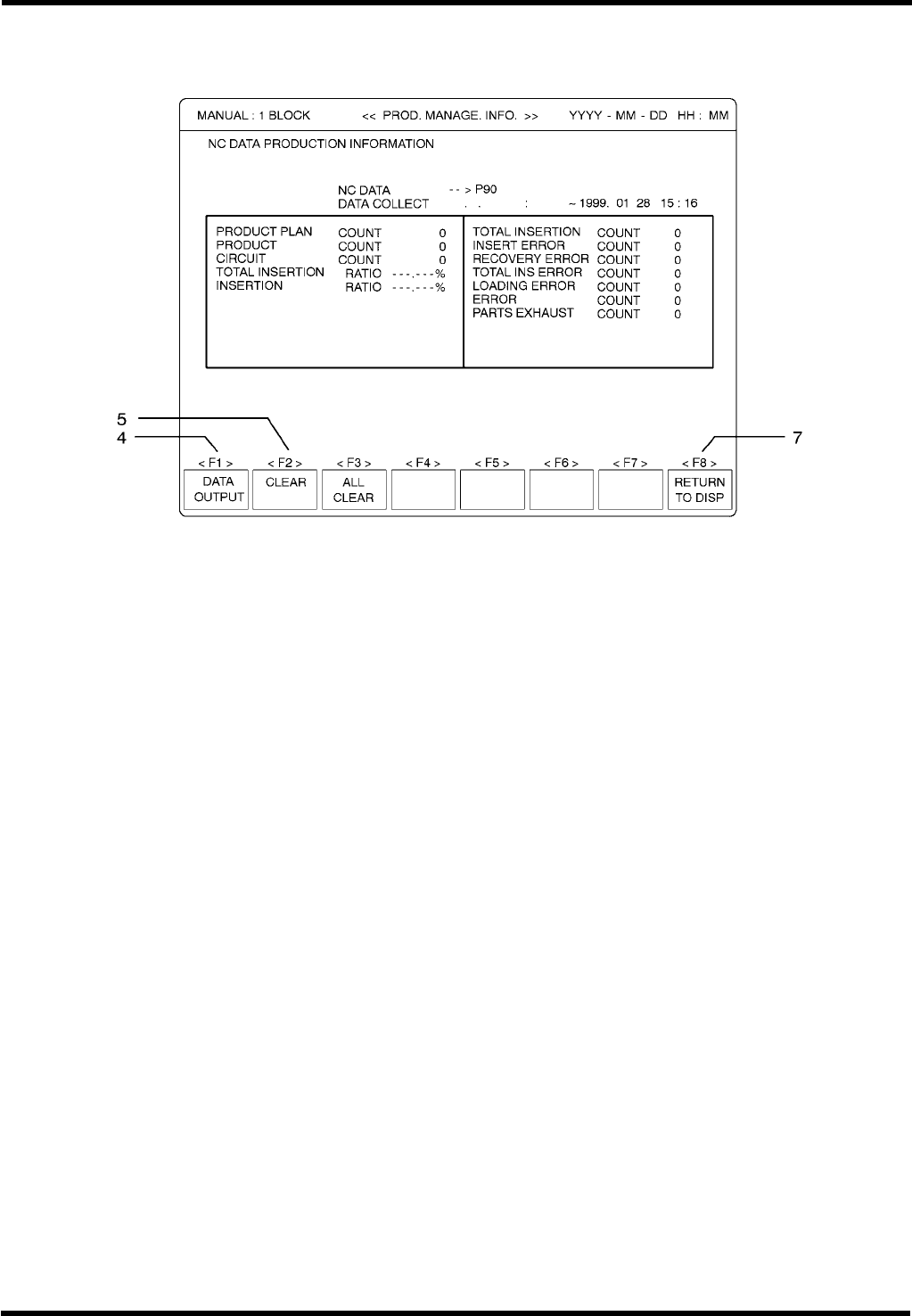 按“F1”(M/C PROD INFO[M/C 生产信息])。